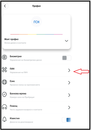 Промяната на ПИН кода може да направите през приложението от меню „Профил“ – „ПИН код“. Необходимо е да въведете Вашия текущ ПИН и да зададете нов ПИН за вход.